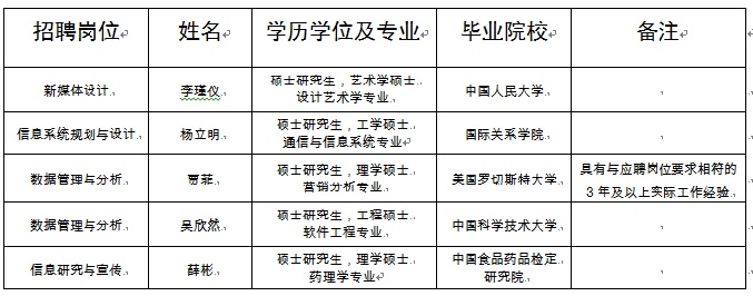 根据事业单位公开招聘工作有关规定,现将我单位2021年编内工作人员公开招聘拟录用人员予以公示。公示期间,如有问题,请向我单位反映,或直接通过中央和国家机关所属事业单位公开招聘服务平台反映。