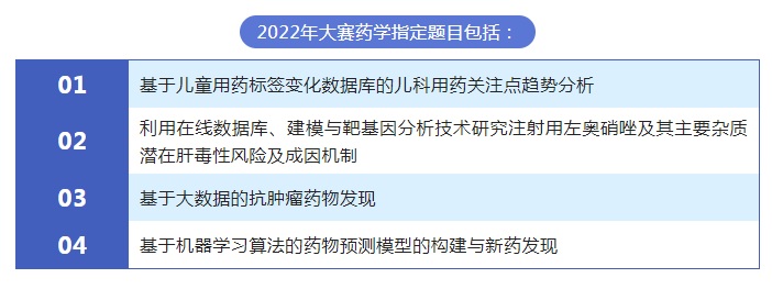 2022年12月22-23日,国家药品监督管理局信息中心举办的“2022药品数智发展大会”在线召开,2021年人口健康“共享杯”大学生科技资源共享服务创新大赛(以下简称“大赛”)药学专项奖获奖名单在12月23日上午召开的数字药监创新发展专题研讨会上正式发布。