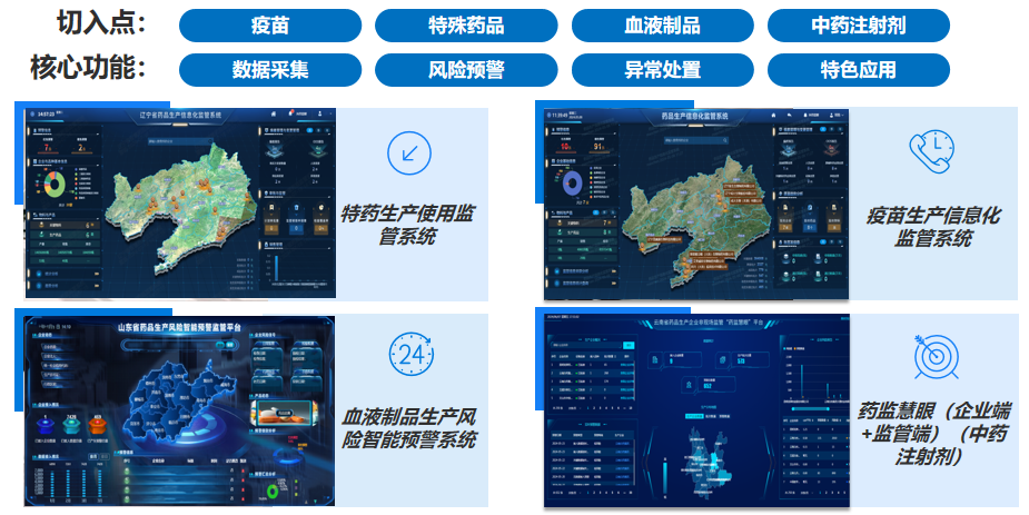 为强化药品全生命周期信息化管理,深入推进药品智慧监管场景应用,在国家药监局信息中心指导下,辽宁、山东、云南三省药监局协同开展药品生产数字化监管示范项目建设,以“科学精准防控风险,着力提升监管效能”为核心目标,针对疫苗、特殊药品、血液制品、中药注射剂等重点品种,依托信息化系统建设,探索基于风险的重点品种智慧监管策略,并形成可复制、可推广的普适性成果。