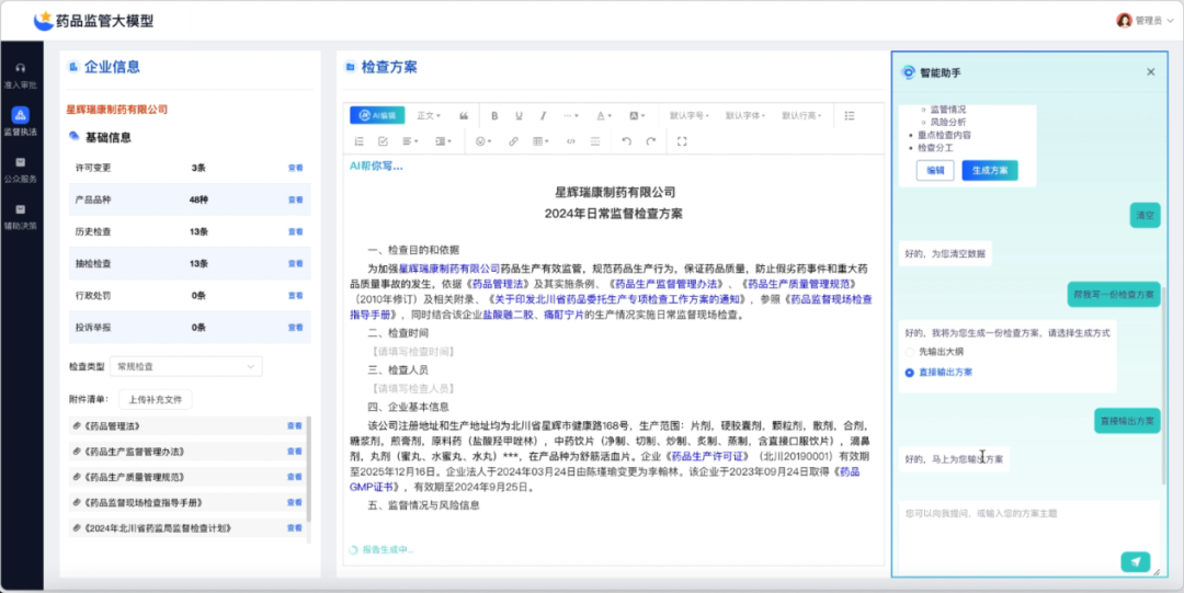 ▲图1 人工智能辅助生成药品监管检查方案场景的原型系统