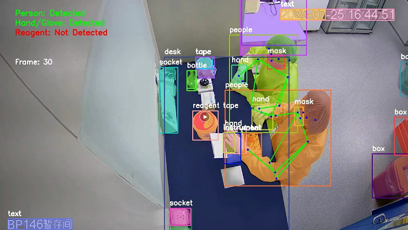 本课题以血浆源来料检验环节的核酸检测试剂配制管理、生产环节的分装抽样管理、前置作业环节的纳米清洗组装操作管理为研究场景,利用“AI检查员”进行实时检查。通过对操作步骤、操作时长等进行过程性管理,及时发现问题与预警,提升血液制品生产管理水平。