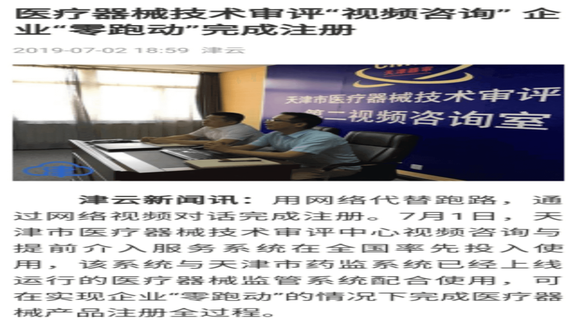 天津市医疗器械注册视频审评系统实现二类注册无纸化零跑动