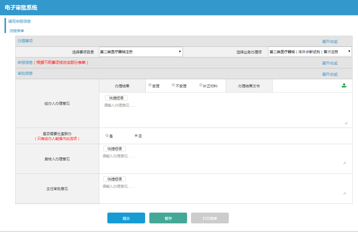 “第二类医疗器械注册管理系统”是利用计算机技术把过去分散实现的注册、受理、审批过程改由通过计算机辅助实现,把办事过程电子化、流程化的业务系统。该审批系统业务范围第二类医疗器械注册、受理及审批,相关数据查询、进度查询、通知公告、期限预警等功能。