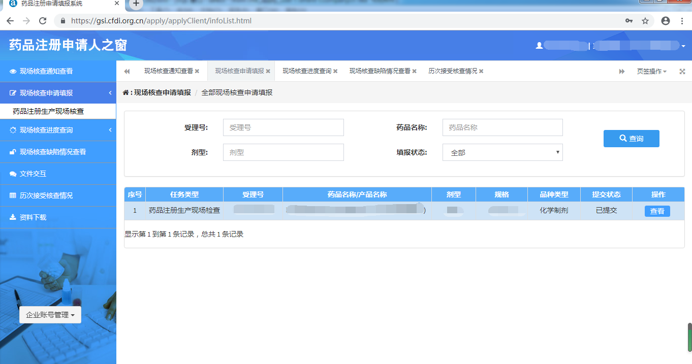 药品注册申请人之窗依托于核查中心现有药品现场检查数据库,可及时向药品注册申请人提供现场检查相关信息、工作进度,有利于提高现场检查工作效率,扩大现场检查信息公开力度,拓宽核查中心与申请人之间的信息交互渠道。