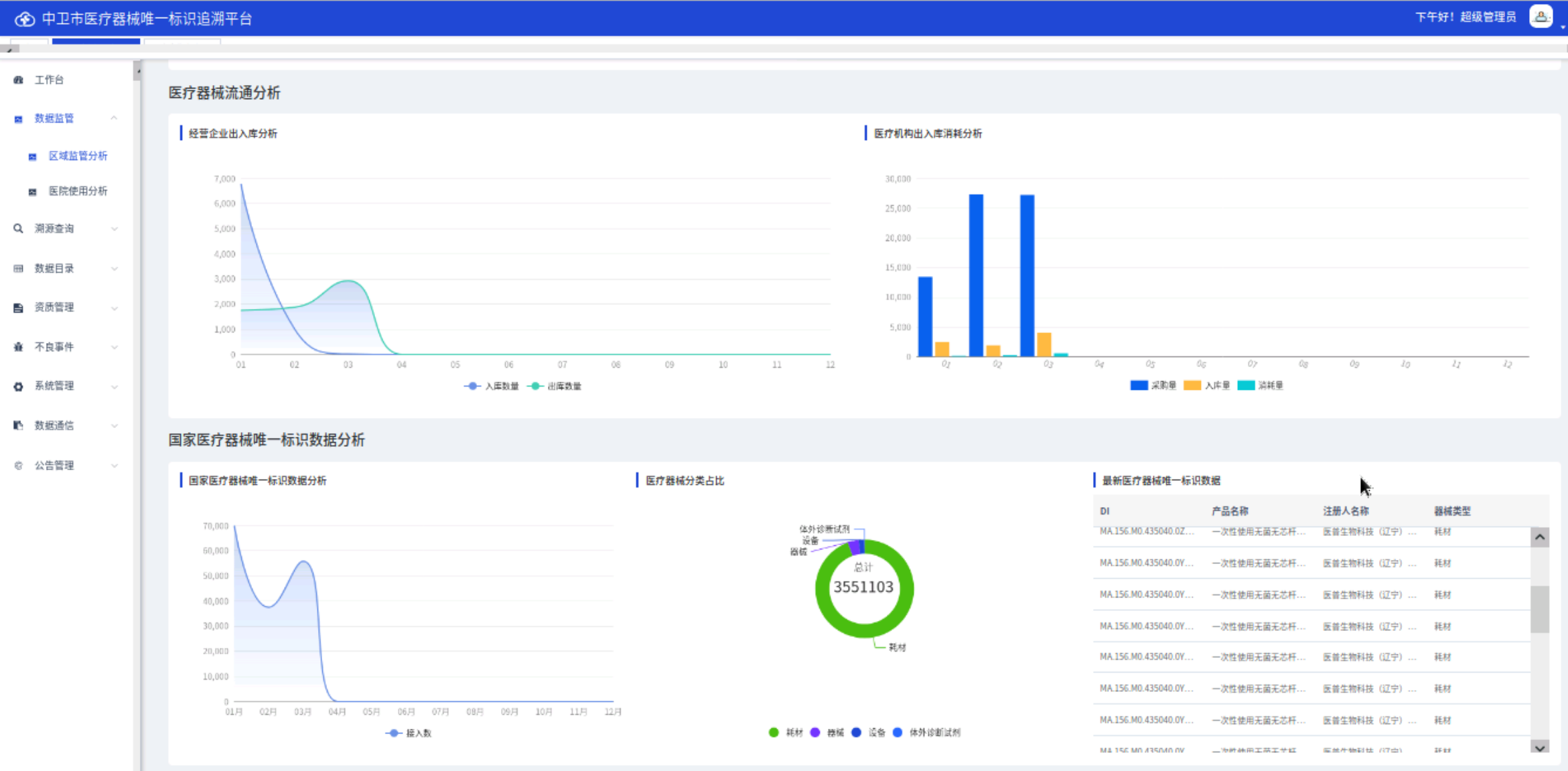 中卫市基于UDI的医疗器械追溯协同智慧监管平台