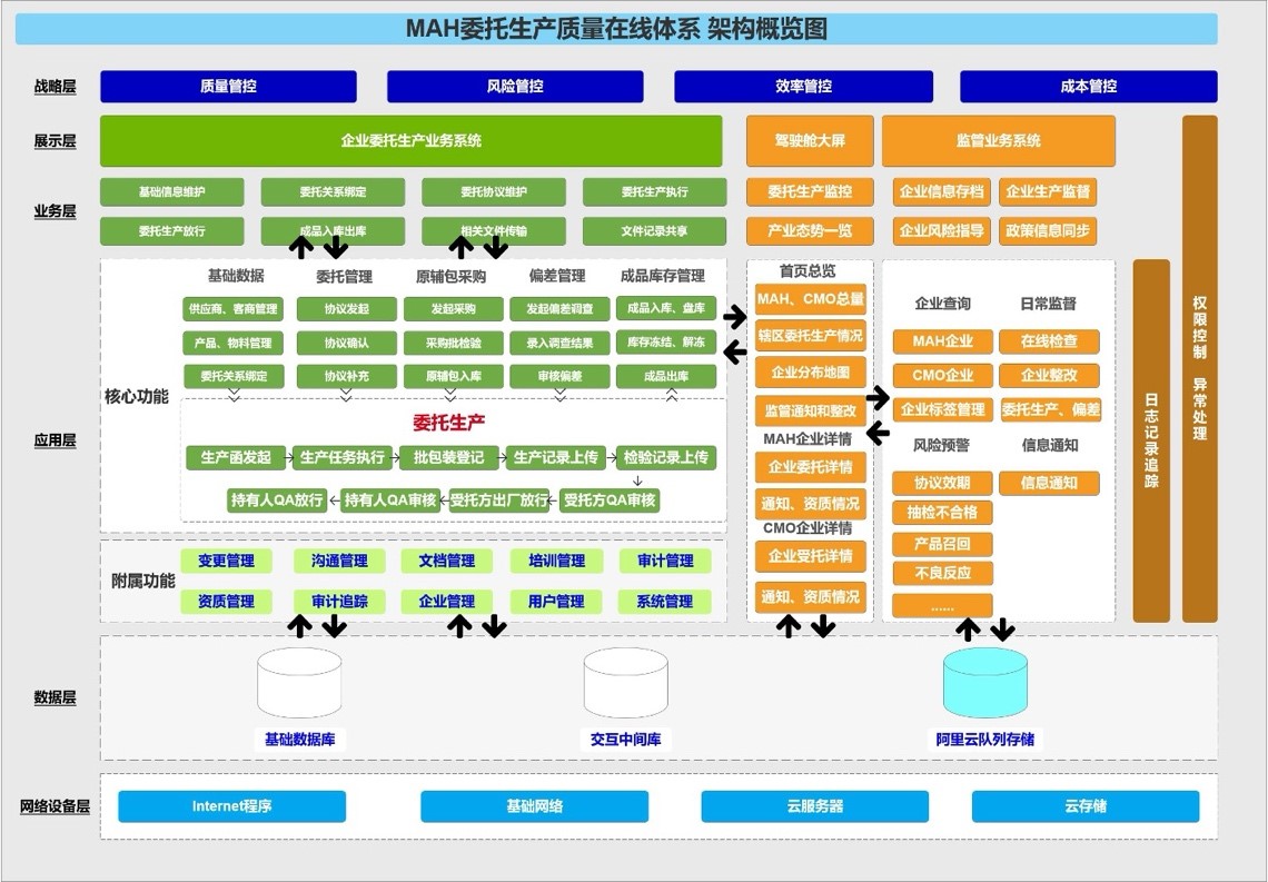 自2019年版《药品管理法》实施以来,国内药品委托生产业态发展迅速、势头强劲,“MAH委托生产e⁺服务窗”是在此背景下,对药品委托生产智慧监管的一次重要探索。系统通过监管端与企业端的数据对接,自动收集委受托双方药品委托生产相关的脱密后的结果性数据,智能监控药品委托生产中的关键性脱敏数据,实现风险预警信息在线提醒、在线处置等风险闭环管理;互通企业端和监管端系统信息,实现监管信息“一屏掌控”、风险预警“自动推送”、风险处置“闭环管理”、日常监管“线上巡查”。通过数字化、可视化的创新监管方式,有效解决跨区域监管的责任落实难和监管成本高等难题,实现药品委托生产领域的“有感服务、无感监管”。在提升政府监管效率,搭建区域信息桥梁,便捷三方信息沟通,落实企业主体责任等方面发挥重要作用,尤其是解决了异地(跨市/跨省)药品委托生产监管的时间成本、经济成本等难点问题,保障了药品委托生产质量安全,形成了与新业态相匹配的新监管模式。